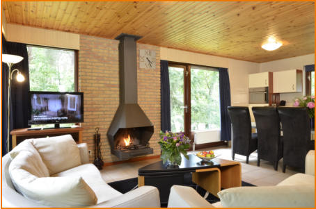 6 persoons bungalow met: grote woonkamer met luxe inrichting, open haard, sat.tv, modern ingerichte keuken voorzien van combi magnetron en afwasmachine, hal, douchecel, aparte toiletruimte, 3 royale slaapkamers waarvan 1 slaapkamer voorzien van een extra tv en zonneterras met terrasmeubilair.